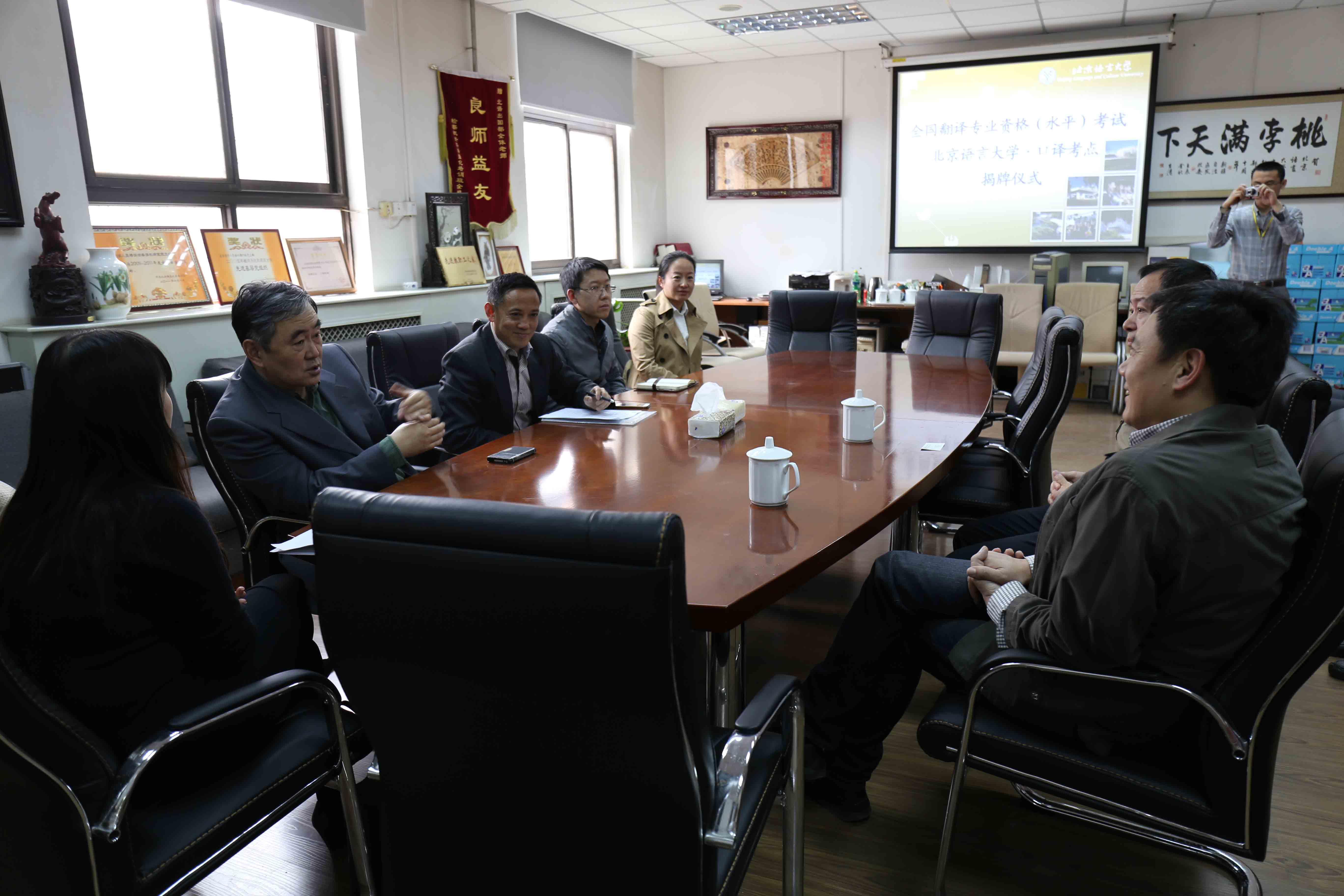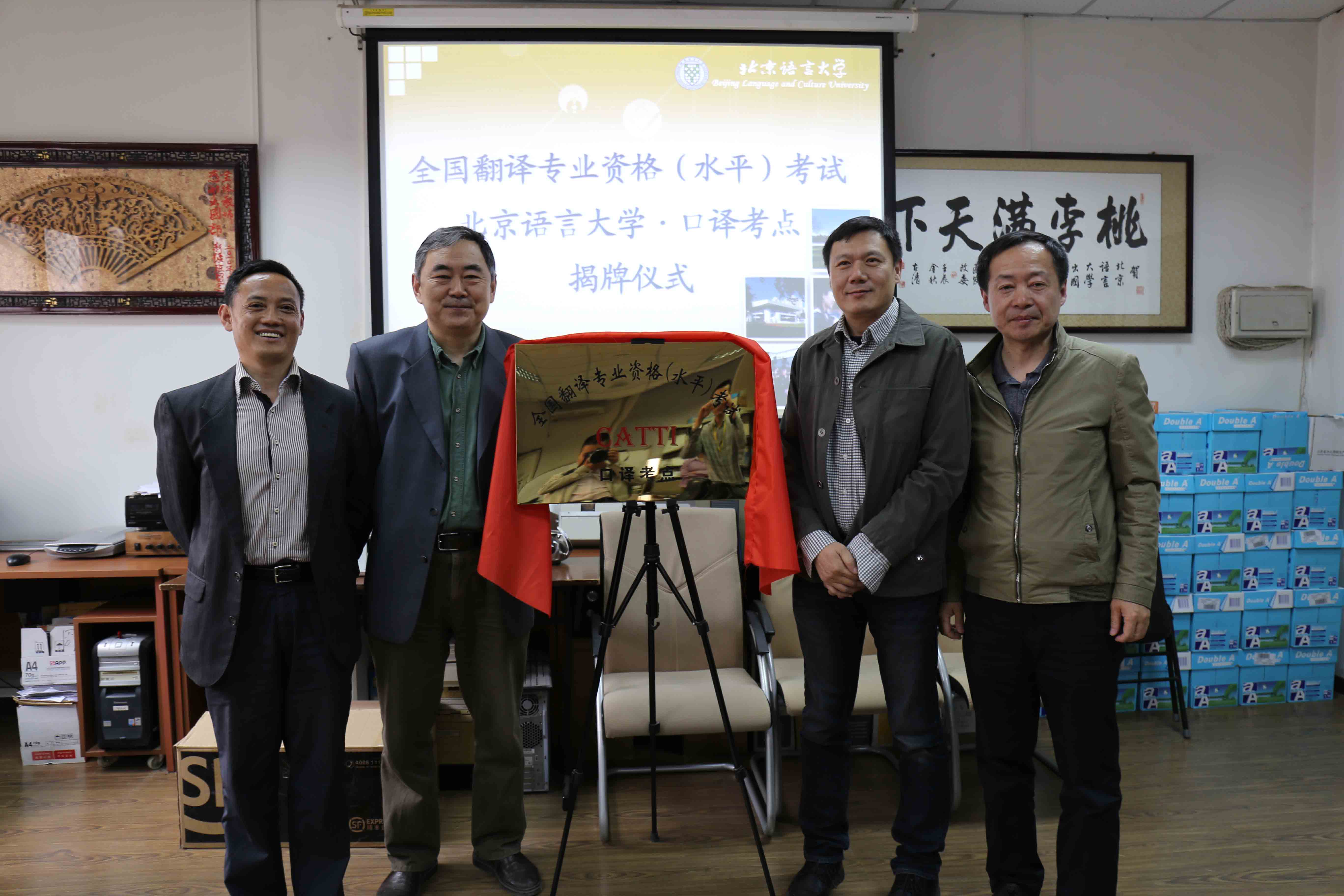 4月15日下午,人社部全国翻译专业资格(水平)考试(CATTI)北语考点揭牌仪式在教二楼247会议室举行。中国外文局考评中心副主任卢敏,国家外专局考试中心主任张弘应邀参加揭牌仪式,培训学院院长陈卫东,副院长童远鹏、孙亚鹏,院长助理、出国培训事业部主任马晓明,专业教师代表,院办公室及考试中心全体工作人员参加了仪式。揭牌仪式前,双方就考试考务情况,专业培训等工作进行了具体交流、讨论。卢敏副主任介绍了考试的重要性及发展过程,并就北语举办翻译考试培训项目提出建议,张弘主任强调了考试工作的安全性和权威性,陈卫东院长代表培训学院欢迎该项考试落户北语,并将为考生提高一如既往的高质量培训、考试服务,双方表示就下一步考试考务及面向广大在校生考生的翻译资格考试培训进行专门讨论研究。揭牌仪式后,张弘主任为考试中心全体人员做了CATTI考试的专项考务培训,卢敏译审做了“如何成为一名合格的职业翻译——CATTI考生常见问题分析”专题翻译讲座,讲座现场座无虚席,广受欢迎,在问答环节,学生踊跃提问,时间一再推延。