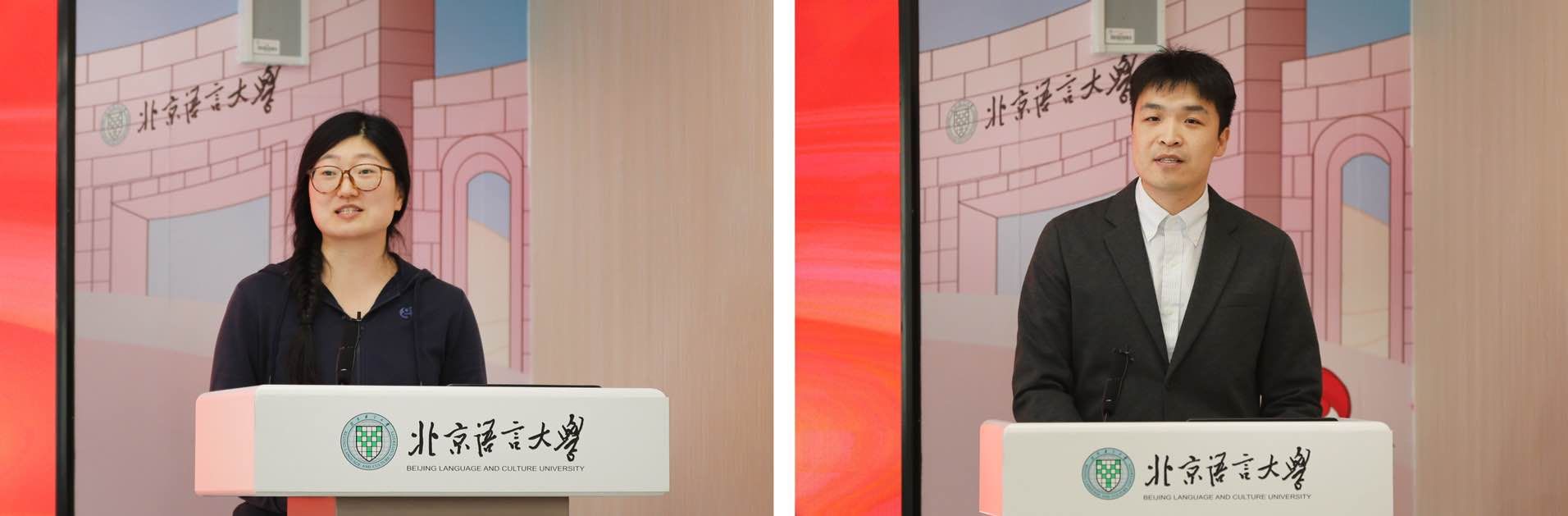 随后,新老生代表发言。课程与教学论专业2024级春季在职研修班学员王琪分享了在北语的求学经历,结合自身上一学期的学习体验和通过国家统考的经验分享,建议大家紧跟学校教学安排,聚焦目标、做好规划、认真听课、学用结合。思想政治教育专业2024级秋季新生代表赵磊表示非常荣幸能在北京语言大学学习,他将带着对北语的憧憬与期待,在三年的求学光阴中,努力规划成长之路,勇攀知识高峰,拓展生命的深度与宽度,用激情、热爱和勇气,书写北语新的荣光。