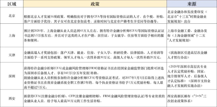 - 部分地区对CFA持证人还有人才引进政策: