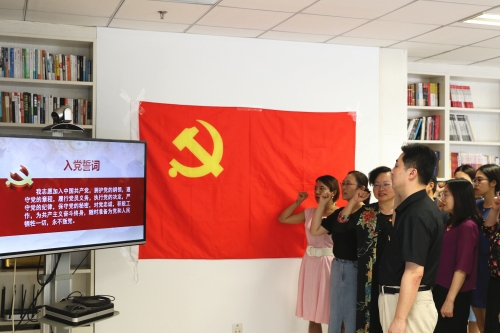 本次活动在《国际歌》庄严的旋律中拉开帷幕,直属支部书记李炜院长带领全体党员重温入党誓词。全体党员郑重的面向党旗,高举右拳,庄严宣誓。通过重温当年的决心和信念,使我们更好的铭记一个真正的共产党员,一定要保持奋斗不息的精神,坚定自己的理想信念,忠实践行自己的入党初心。