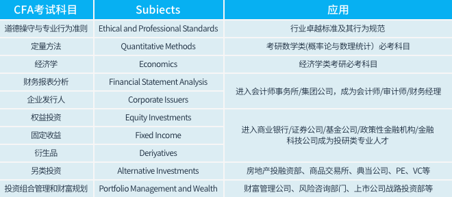 CFA考试分三个级别,每个级别包含十个金融学习科目,内容涵盖了所有金融行业需要的专业知识,被誉为金融界的MBA。