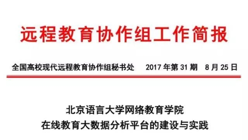 基于此,北京语言大学网络教育学院组建了项目小组,在北京师范大学远程教育研究中心的指导与帮助下,开展了“北语网院在线教育大数据分析平台建设与服务”项目。