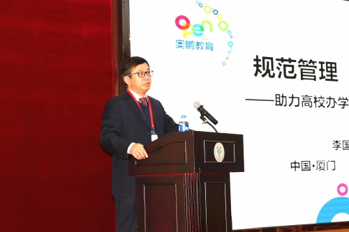 奥鹏远程教育中心李国斌副总经理做了题为《规范管理、提升质量》的报告,从国家新时代对继续教育、网络教育提出的新要求以及网络教育改革的新趋势与政策取向与大家进行了分享。