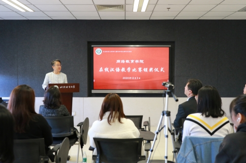 评审专家刘谦功教授在致辞中对本次教学比赛活动的重要性和价值给予了充分肯定。她说,作为学校开展跨境远程汉语国际教育的专门学院,网络教育学院成功举办本次在线汉语教学比赛,发挥了很好的示范和引领作用。在教学比赛和评选过程中,高质量的教案、课件以及丰富的教学方法得到了全方位展示,参赛教师的专业能力和敬业精神值得肯定和表彰。她认为,未来在线教育发展将机会与挑战并存,同时在线教学跨越时空的优势十分突出,跨境远程汉语国际教育和在线汉语教学发展前景值得期待。