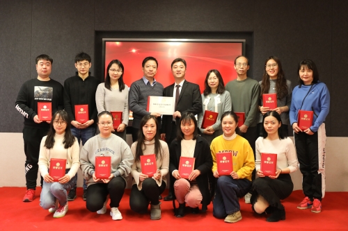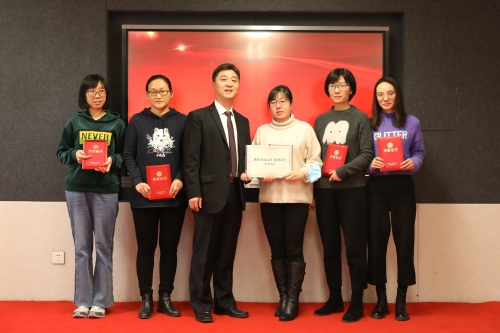 李炜院长在讲话中高度肯定了全体员工一年来的辛勤付出和取得的成绩,并围绕党建工作、业务拓展、质量保障、学院文化、十四五规划、其他重要任务六个方面,总结了2020年学院各项工作的开展情况,同时对2021年的工作进行了安排部署。2020年,学院全体教职员工积极应对政策变化、疫情防控等影响因素,在稳步推进各项工作的同时探索高质量创新发展。这一年,学院按照教育部和学校要求,始终保持高度的警惕和政治自觉,全力做好师生员工疫情防控工作;认真做好巡察整改,强化内部民主管理、加强党内监督;积极开展停课不停学,保障学院学生正常学习与考试;深入推进非学历混合式教学,实现培训方式多样化,保障教学和培训质量;对外加大业务拓展力度,养精蓄锐、厚积薄发;大力推进跨境远程汉语国际教育,明确了实现目标的六项核心任务;深化“1+3+7”全面质量保障体系建设,引入并通过ISO9001质量保障体系认证。2021年,学院将进一步围绕“立德树人”根本任务,按照十四五总体规划,深入推进育人体系和质量保障体系的建设,也希望网院全体同仁能够继续团结协作,拼搏进取,在各自的岗位上贡献力量! 为鼓励大家一年来在各自岗位上所做出的突出贡献,学院评优工作组参考本人述职、个人考核评分、部门推荐、员工评选和党员推荐复核等综合维度的考核结果,本着力求客观、公正和公平的原则,挖掘出每名优秀的奋斗者和贡献者,以奋斗者团队的标准激发每一个团队,不断营造集体奋斗、协同创新的学院氛围。在充满热情与期待的氛围中,王小萍书记、李炜院长分别为年度考核优秀的团队和个人逐一颁发了荣誉证书并合影留念。